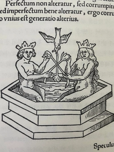 고통스러운 죽음과 정화를 거쳐 되돌아온 혼으로 새로 태어난 것은 반음양적 양성자다. 두 개의 다른 성(性)이 붙어 혼합된 기괴한 양성자는, 화려한 옷을 입었던 왕과 여왕만큼 아름다워 보이지는 않는다. (그러나 삶의 부조리에는 더 가까우리라!)