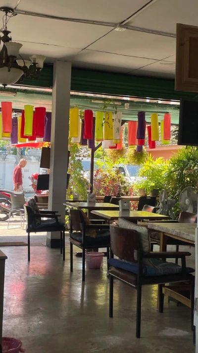 맛있는 음식으로 배고픔에서 벗어난 나는, 그제야 식당 안을 다시 찬찬히 둘러보았다. 인위적으로 밝게 조명을 하지 않은 실내는, 해가 내리쬐는 바깥의 빛 때문에 오히려 조금 어둑한 느낌이다. 식당 앞은 간판 대신 알록달록한 천 조각들로 장식되어 있다. 이런 것들이 지금 내게는 아늑한 느낌을 주는데, 어젯밤이라면 여기도 꼬질꼬질하다고 느꼈겠지.