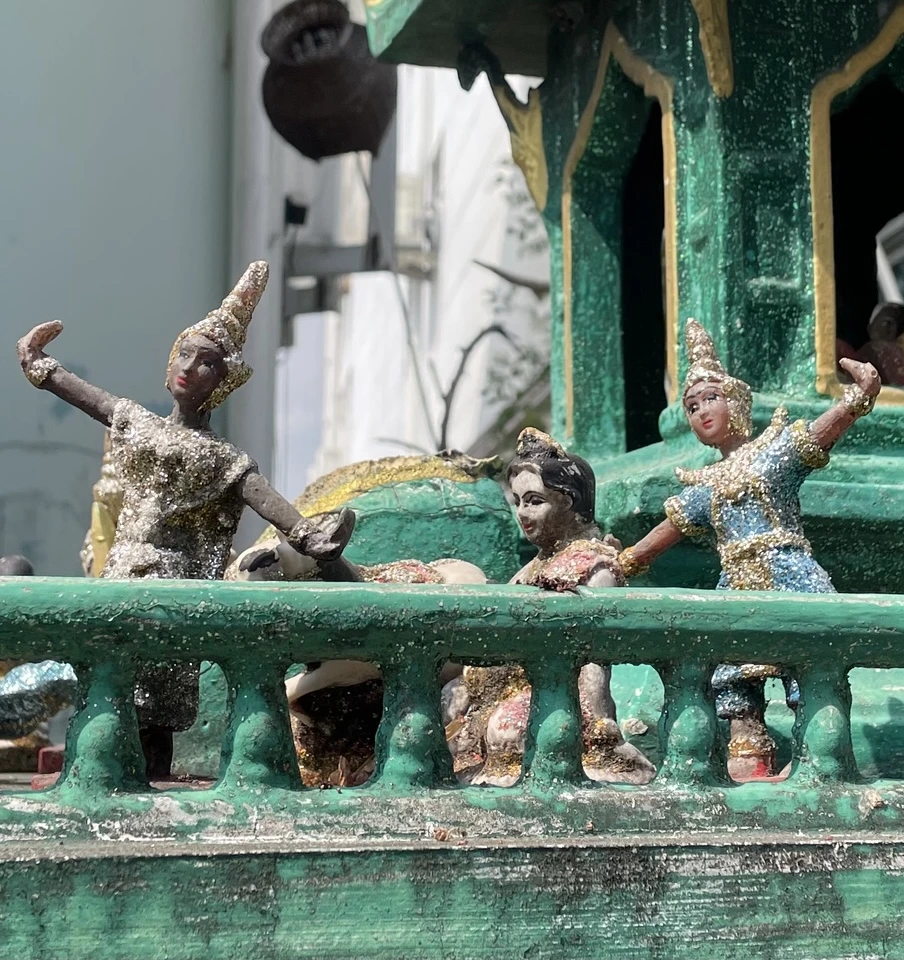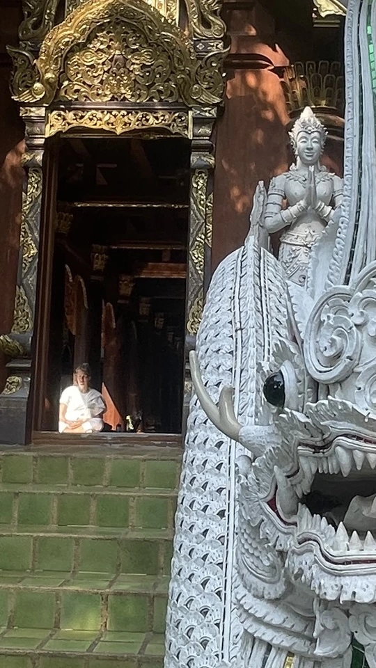 그렇게 택시를 탔더니 너무 이르게 도착했던지 아직 문을 열지 않은 상점이 많았다. 나는 그 근처 왓람쁭'이라는 사원에서 잠시 시간을 보내기로 한다. 사원에 들어서니 마치 나 혼자밖에 없는 것처럼 고요하다. 그러나 새소리에 주위를 둘러보니 문득 하얀 옷을 입은 사람들이 있는 듯 없는 듯 곳곳에 있었다.
