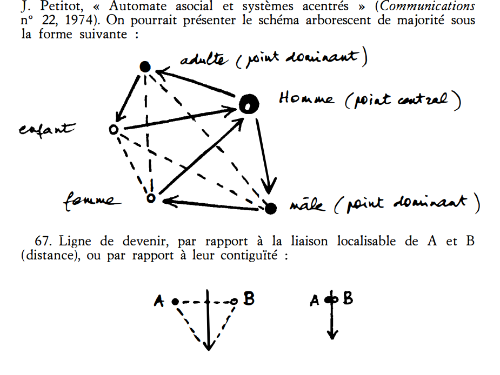 생성의 선은 언제나 중간에 있다... 생성이 하나의 블록이라면(선-블록), 그것은 생성이 근접한 식별 불가능성의 지대, 아무도 아닌 자의 땅, 떨어져 있거나 인접한 두 점을 이끌고 가...위치를 정할 수 없는 관계를 구성하기 때문이다.