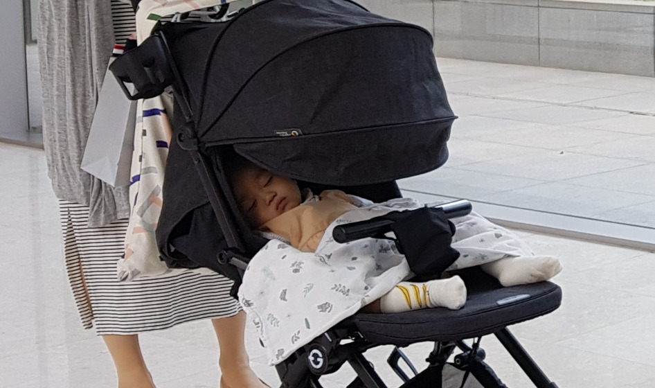 하루가 노곤했는지 유모차 안에서 잠든 성준이.