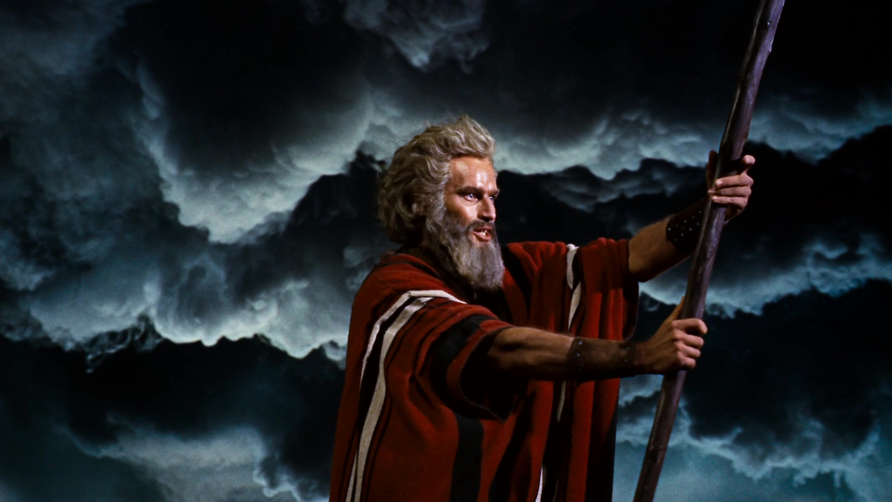 <십계>의 전반부는 모세가 이집트 왕자였던 시절과 이집트에서 쫓겨난 후 십보라와 결혼하여 살던 시절을 보여주고, 후반부는 신의 계시를 받은 다음에 이스라엘 민족의 선지자이자 지도자로서 활약하는 모습을 보여준다. 처음으로 <십계>를 접했을 때는 시나이산에서 신(야훼)과의 만남, 이집트에 재앙이 내리는 장면들, 너무나 기대했던 홍해가 갈라지는 장면이 쏠려있는 후반부가 재미있다고 생각했다. 신 즉 하느님이 불덩이 나무의 모습이라든가 모세의 지팡이가 뱀으로 변한다든가 하늘을 가득 채운 먹구름으로부터 바다가 양쪽으로 갈라지는 등 신기한 볼거리로 충만한 후반부가 재미있을 수밖에 없었다. 전반부는 왕자나 목자의 역할이고, 후반부는 신의 대리인 역할이니 체급이 달라 보일 수밖에. 쉽게 얘기하자면 초딩의 눈에는 후반부의 모세는 다름 아닌 ‘히어로’였던 것이다.