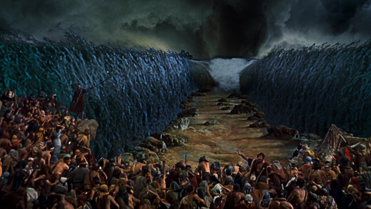 <십계>를 처음 보았을 때는 홍해가 갈라지는 장면이 제일 궁금했다. 지금이야 컴퓨터 기술의 발달로 온갖 스펙터클한 장면들을 보고 있지만, 그때만 하더라도 바다가 두 쪽으로 갈라지는 장면을 어떻게 찍었을지 그게 화면에 어떤 그림으로 등장할지 상상조차 하기 힘든 시절이었다. <십계>는 이미 바다 갈라지는 장면만으로도 유명한 영화였기에 더 기대가 될 수밖에 없었다. 영화를 보면서 건물이나 조각물 등 규모의 웅장함에 놀랐고, 사진이나 그림에서나 보던 이집트의 다양한 유물을 보는 재미도 쏠쏠했지만, 하늘을 가득 덮은 먹구름에 휩싸이며 넓고 짙푸른 바다가 쩍 갈라지는 위용에는 경탄을 금치 못했다. 그런 눈요기만 하더라도 본전 다 뺀 기분이었다.