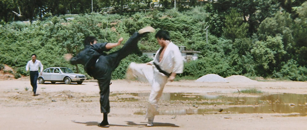 이 장면이야말로 이소룡의 철학을 드러낸 <맹룡과강>의 명장면이다. 중국 무술(Martial Arts)을 어필하려는 의도가 엿보이는 장면이다. 무술이 어떻게 보이는 게 좋을지에 대한 고민이 엿보이는 장면이기도 하고. 발차기를 날리고 나서 어떤 무술의 어떤 기술인지 얘기하는 주인공을 본 적이 있는가. 탕룽은 발차기 기술에 대하여 이렇게 설명한다.