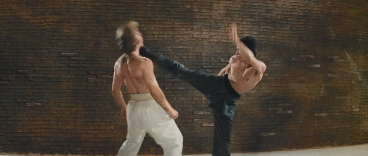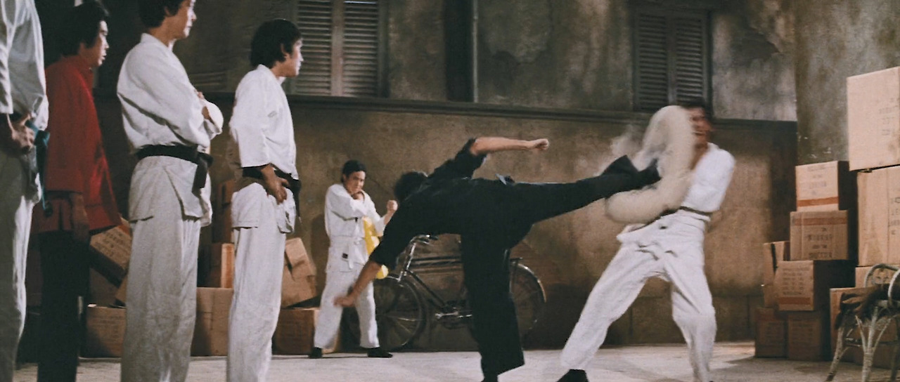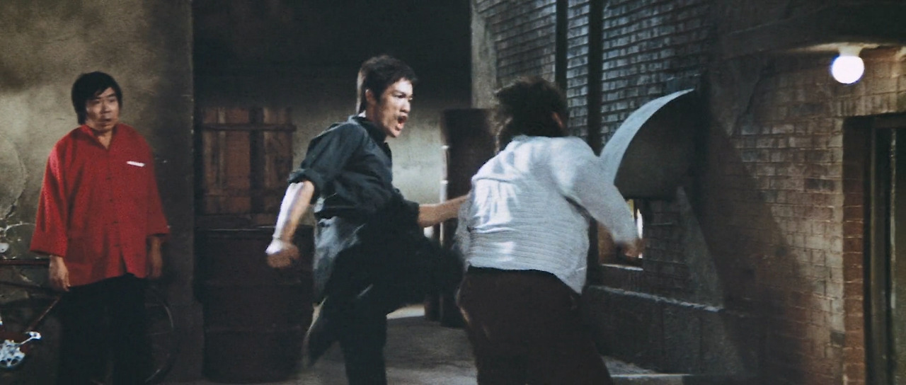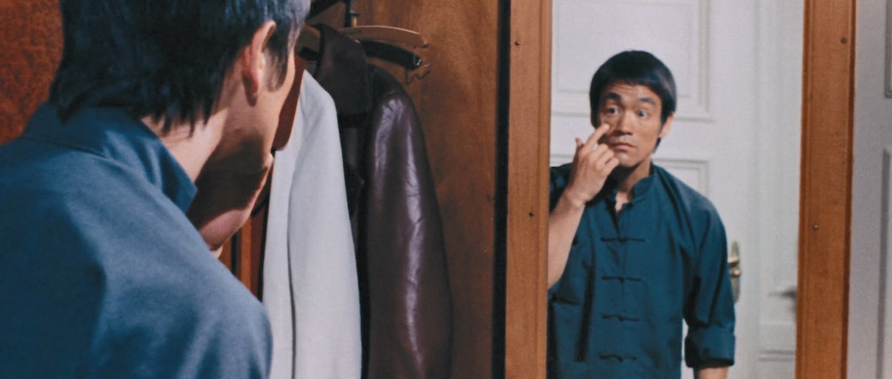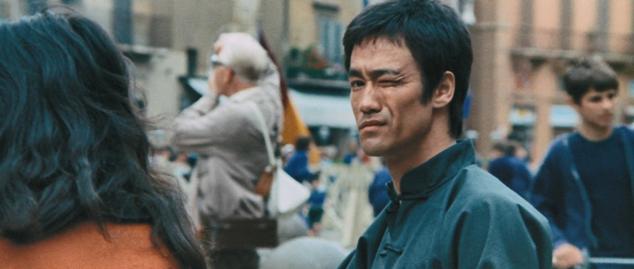 이소룡의 코믹 연기는 처음으로 무술 실력을 발휘하는 장면에서도 등장한다. 촌스러운 홍콩 청년을 우습게 본 로마 깡패들과의 대결에서 자신이 구사하는 기술이 무엇인지를 정확히 알려주며 – 못 알아듣겠지만 – 한 수 가르치듯 해치우는 장면에서다. 대화체로 표현하자면 이런 투였다.