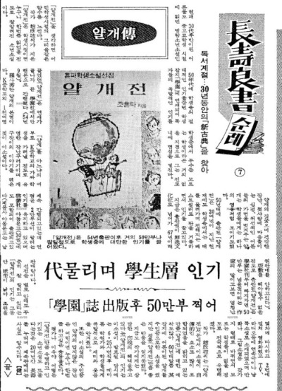 경향신문에서 연재된 「장수양서(長壽良書) 순례」라는 칼럼에서는 <얄개전>은 그때까지 50만 부 이상이 판매된 것으로 추정하고 있었다. 1954년에 단행본으로 발매된 것이 시작이니까 70년대까지를 생각하면 20년간인데 그렇게 대를 물려가며 인기가 있는 청소년 대상 소설이 <얄개전> 외에도 있는지가 궁금할 정도다.