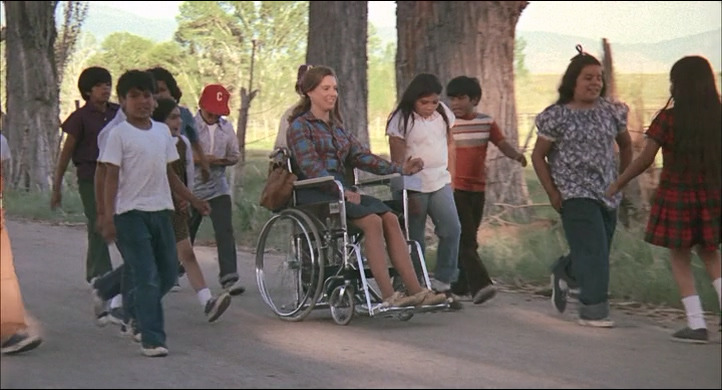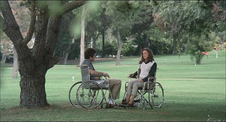 <저 하늘에 태양이>를 보면서 울컥했다기보다 찡하게 다가오는 장면이 있었다. 그것은 질 킨먼트(마릴린 해셋)에 의한 것도 아니고 질의 사랑 딕 뷰익(보 브리지스)에 의한 것도 아니었다. 질이 장애를 입은 후 장애인들의 모임에 갔을 때 발생한 상황이었다. 거기 있는 장애인들이 무슨 대단한 장애인이 왔냐며 자조(自嘲)하듯 비웃는 모습을 보일 때 한 사람만은 질을 그렇게 대하지 않았다. 질과의 대화에서 보여준 그 사람의 의지는 정말 대단한 것이었다. 그것은 “내일 죽어도 사과나무 한 그루 심겠다”는 요지의 유명한 말과 같은 맥락이었는데, 질이 이 사람과의 만남에서 뭔가 해내겠다는 불굴의 의지를 다지게 되었다는 맥락으로 해석될 수 있는 부분이기도 하다.