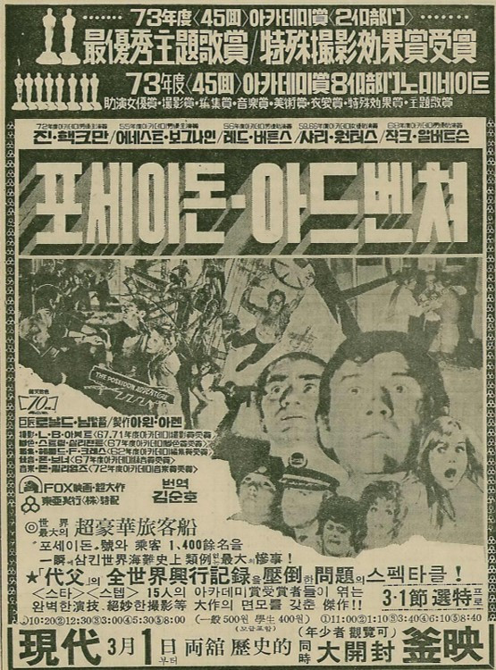 <포세이돈 어드벤쳐>는 중학교 1학년 봄소풍을 다녀오는 길에 본 영화였다. 스스로 대단한 의미를 부여하고 있는 영화이기도 하다. 빵집이나 극장 갔다가 걸려서 정학 먹었다는 얘기를 수북이 들었음에도 감행한 한 첫 모험이었기 때문이다. 영화 보는 도중에 한 친구가 불쑥 한 얘기 때문에 찜찜한 마음을 꽁꽁 싸매고 본 영화이기도 했다. 극장에 들어올 때 어떤 아저씨가 자기 이름표를 본 것 같다고 한 것이다. 교복 입은 채로 들어온 게 불안하던 우리 가슴에 불을 지른 것이다. 그런데도 기어이 엔딩 크레딧을 보고서야 나오는 용기를 발휘했던 영화이기에 자화자찬 의미를 부여한 것이다.