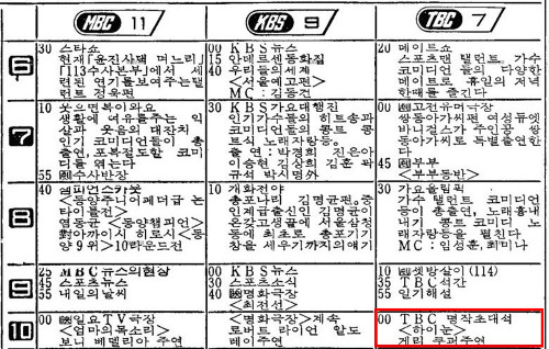 주제 음악은 그렇게 많이 들리는데도 영화는 그렇게 보기 힘들었던 사정이라도 있었나 싶어서 TV 방영 연도를 한번 찾아보았다. <하이눈>이 TV에서 처음으로 방영된 해는 1969년이었는데, 주말이 아니라 수요일에 방영되었다는 사실을 알았다. KBS의 ‘명화극장’에 대한 기사까지 났었는데, 거기에 <하이눈>이 방영할 예정으로 확보된 영화로 쓰여있었다. 웃기는 건 이미 방영되고 난 이후의 기사에서였다. 그다음으로 방영된 해는 첫 방영의 7년 후인 1976년이었다. 1969년과 1976년의 차이는 햇수도 물론이지만 개인적인 상황으로 보면 아주 큰 차이였다. 제목도 몰랐던 1969년과 제목은 물론 배우도 주제 음악도 알고 있었던 1976년은 달라도 너무 다른 해였으니까. 언제부터 <하이눈>을 들어서 알게 되었는지는 몰라도 그 몇 년간은 <하이눈>이 대단히 고팠던 시절이었던 셈이다.
