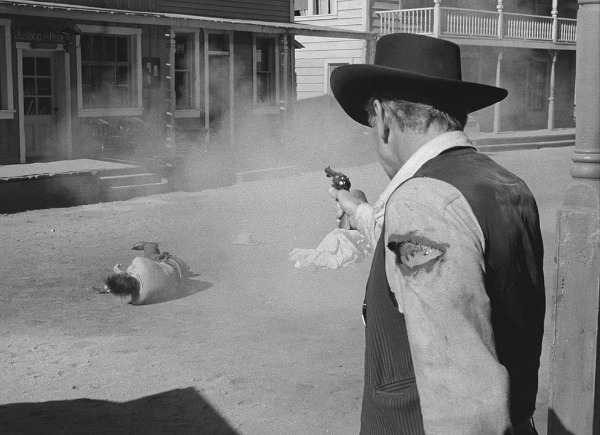 <하이눈>의 반전은 낯설어 보이는 보안관의 약한 모습에서 비롯된다. 주민들에게 도움을 청하며 방황하던 윌 케인이지만 어떤 상황인지를 파악하게 되자 혈혈단신(孑孑單身)이나마 결사적으로 대적하는 모드로 바뀌었던 것이다. 판사도 시장도 주민들도 외면할 만큼 이겨내기 힘든 상황에서도 책임을 회피하지 않고 정정당당하게 맞서는 인간의 모습이 <하이눈>의 감동이었던 것이다. 어떻게든 잘 싸워 이기는 걸로만 묘사되어 왔던 서부의 영웅과는 다른 모습이었다. 비평가들은 <하이눈>에 “서부극 드라마(Western Drama)”나 “성인용 서부극(Adult Western)”이라는 표현을 사용하며 액션에 치중하려는 간단한 구성이나 영웅적인 단순한 캐릭터로 만들어진 영화가 아니란 점을 강조하기도 했다. 비평가 폴린 케일은 “서부극 형식을 은근한 시민교육에 사용”한다고 표현하기도 했다. 비겁하고 무책임한 세속적 작태와 결연한 도덕적 모델을 동시에 보여주는 인간 드라마로 생각했기에 가능한 표현이 아니었을까. 겉핥기식 영웅이 아니라 진정성 있는 인간의 모습에 손을 들어준 것이다. “도덕적 위선과 회피와 책임 중에 당신의 선택은?”이라는 질문에 대한 답 중의 하나가 <하이눈>이었다. 본새 나는 대답이야 간단하겠지만 거기에 필요한 용기는 어떻게 구할 수 있을까.