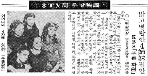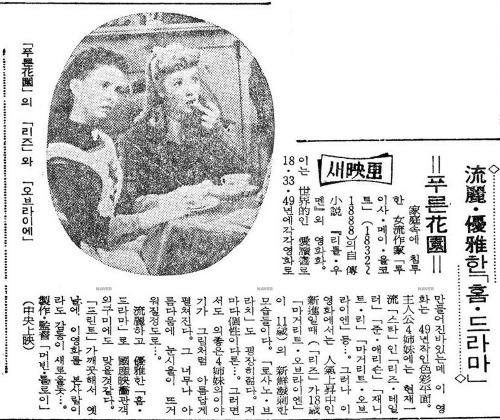 <푸른 화원>은 1949년도 영화지만 우리나라에서는 1954년과 1964년에 개봉했었다. 당시의 신문에서 영화평을 찾아보았다.