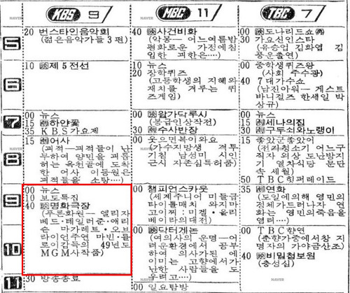 10년 후 재개봉했던 1964년의 신문에서는 특색 있게 이 영화를 소개하고 있었다. 유행하던 배우들에게 초점을 두고 있는 면이 재미있었다.