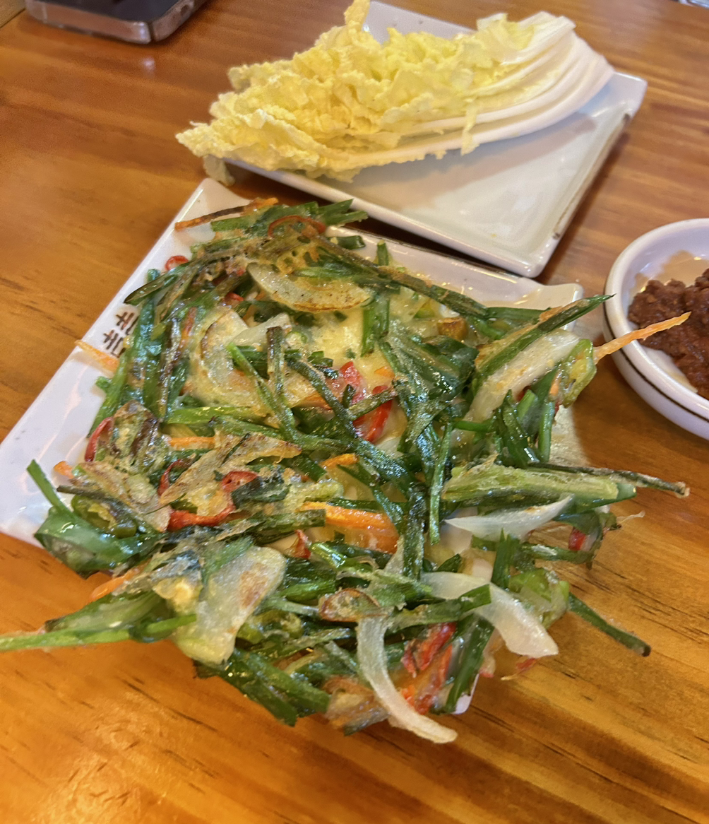 밑반찬으로 나오는 파전과 콩나물국이 정말 맛있습니다.