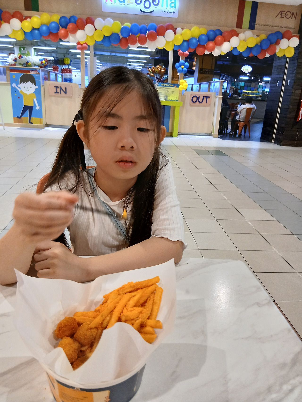 늘 지나다닐 때 슬기가 먹어보고 싶어 해서 한번 먹어봤다. 감자튀김집인데. 가격이 꽤 비쌌다. 흔한 감자튀김인데 거기에 파우더나 시즈닝을 뿌려준다. 가루는 여러 가지 선택할 수 있다. Cheese, Sour Cream, Seaweed, Tom Yam, Hot & Spicy, Barbecue, Tomato 등.