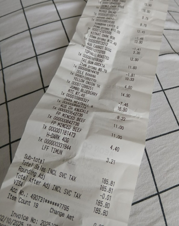 내가 이온몰과 자야에서 쇼핑한 가격을 올려놓겠다.