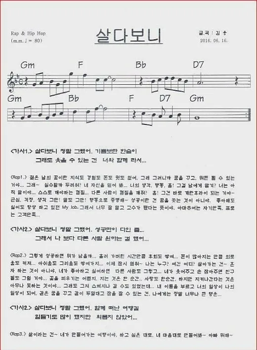 꿈에서 흥얼거린 8마디의 멜로디를 복기해서 만든 노래이다. 8마디의 반복된 멜로디 사이사이에 대화형식의 나래이션 랩으로 표현했습니다.