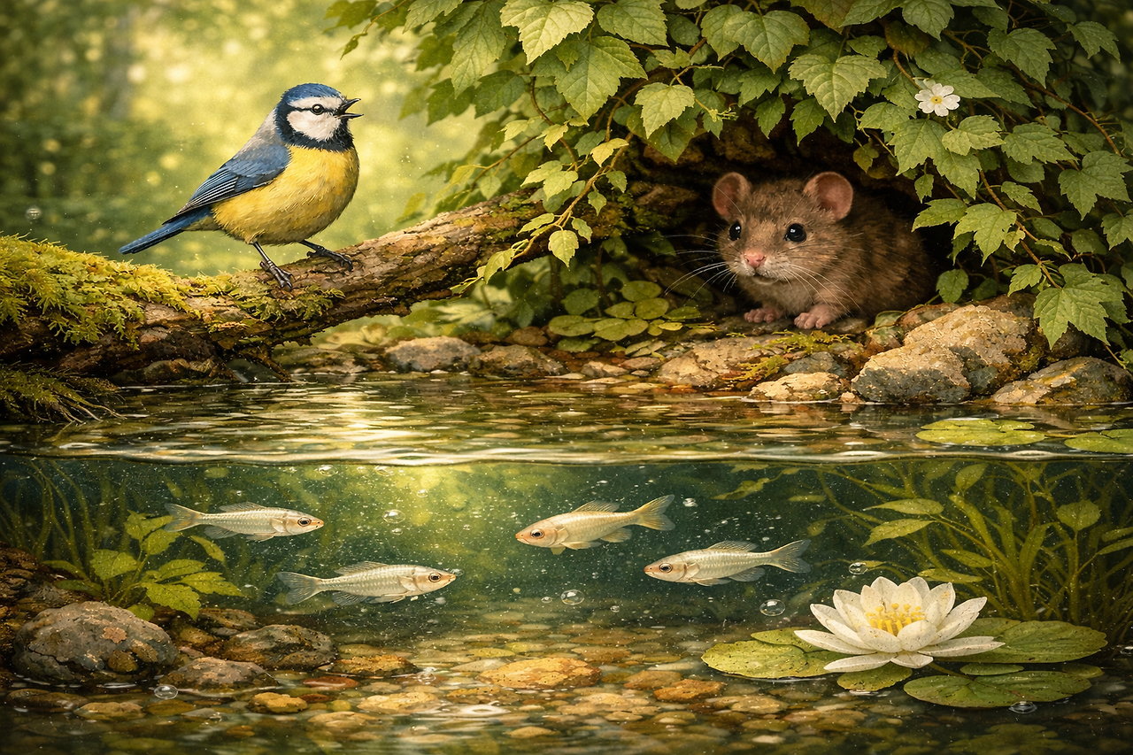 연못 속에서 방향을 바꾸는 작은 물고기들의 망설임까지