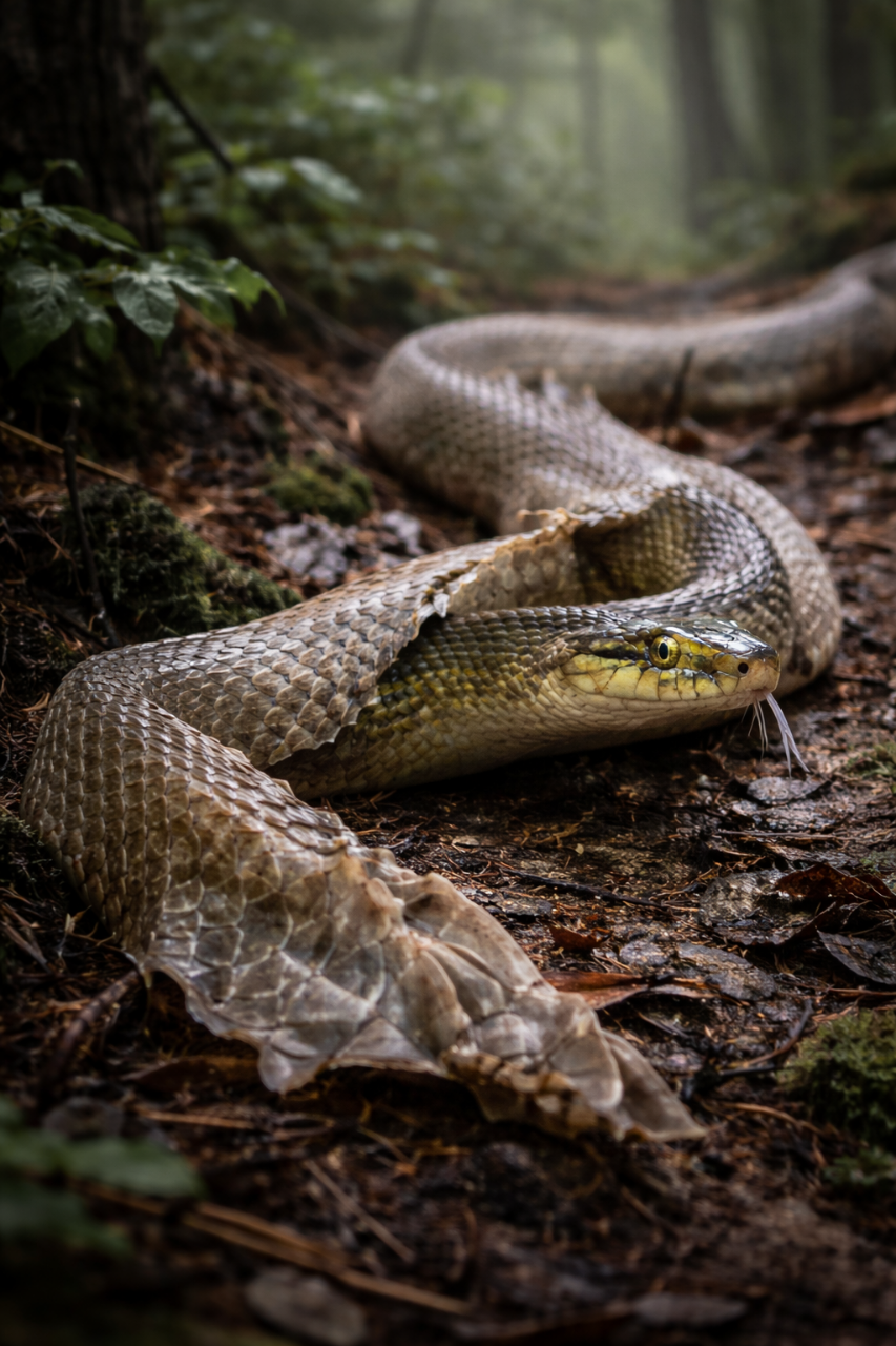 뱀이 지나간 자리에 남긴 허물을 발견하고