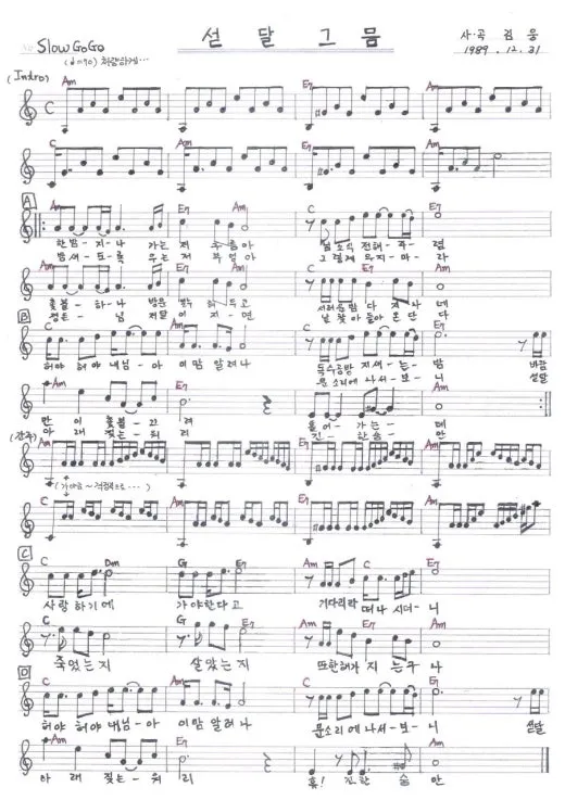 락 발라드 형식의 1인칭 시점으로 풀어낸 노래입니다. 이 곡의 모티브는 정비석의 소설 「성황당」을 원작으로 한 영화 〈뻐꾸기도 밤에 우는가〉입니다. 정윤희, 이대근 주연의 이 작품은 1980년 대종상에서 9개 부문을 수상한 명작으로, 당시 어린 제게는 ‘정윤희는 세상에서 가장 아름다운 여자’라는 인상을 남긴 영화이기도 합니다.