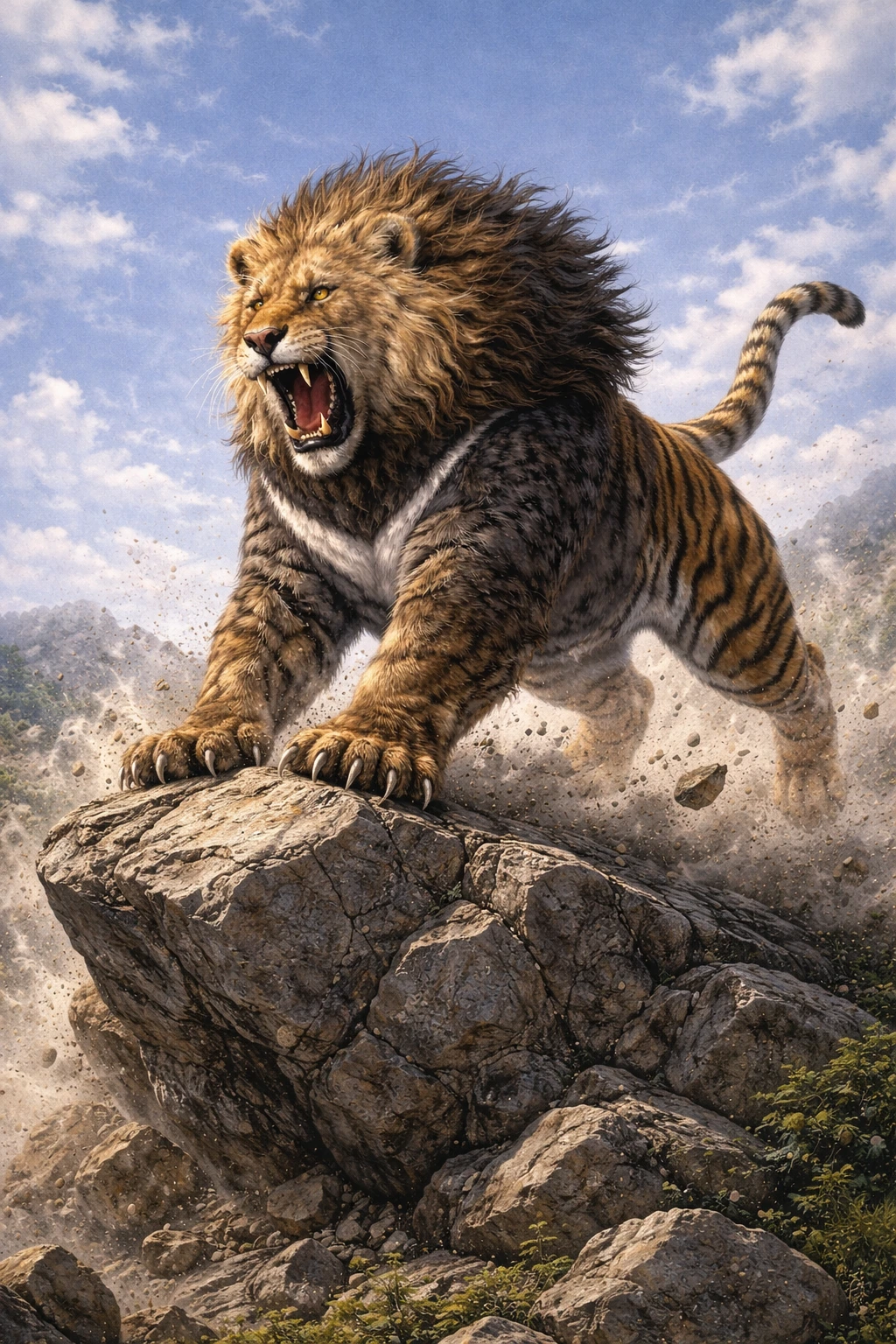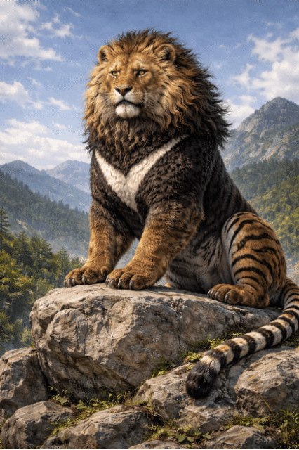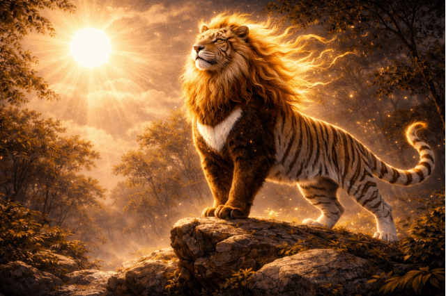 곰(熊)의 버팀 + 사자의 위엄 + 호랑이의 도약을 품은 태양의 수호자