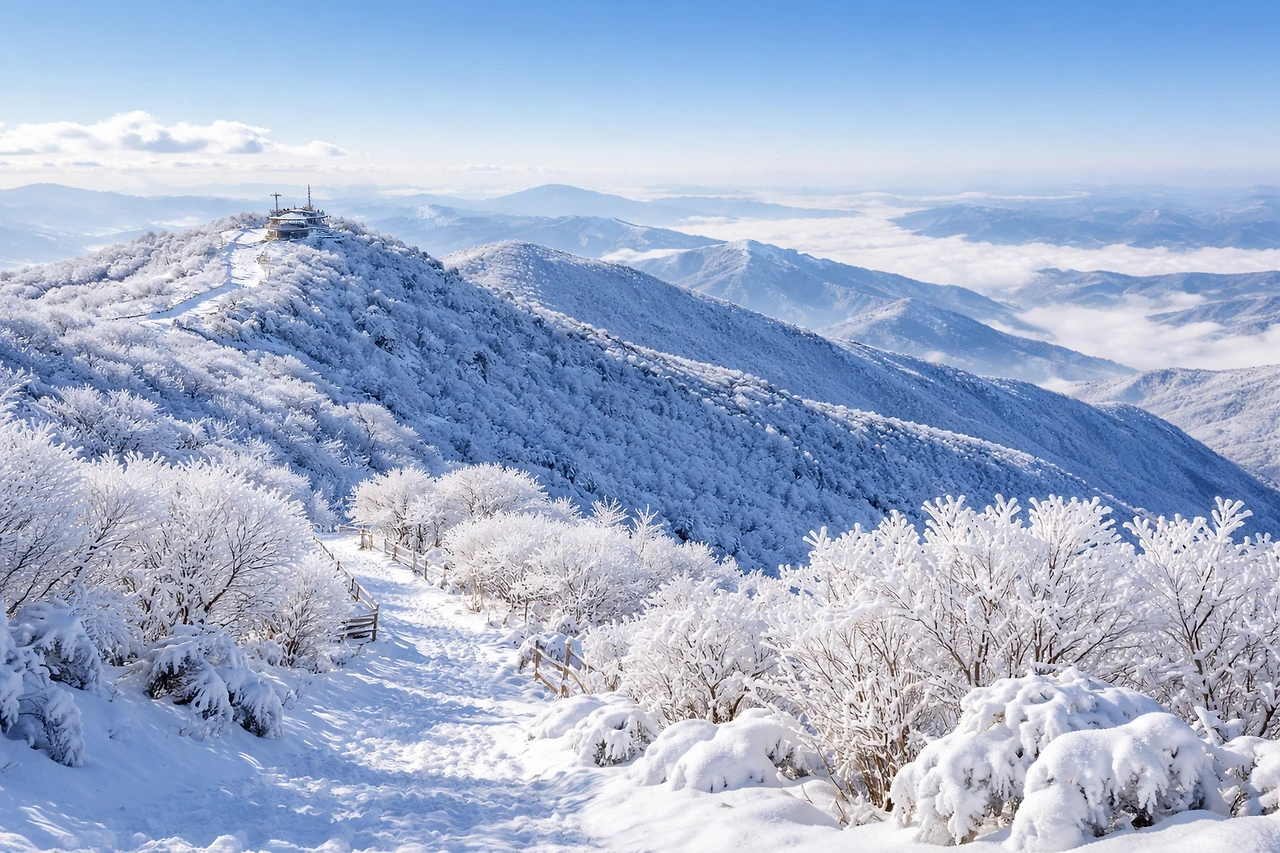 호흡은 가빠지고 폐가 터질 듯해 잠시 멈춰 섰다. 뒤를 돌아보니 눈부신 소백산의 설경이 펼쳐져 있다. 따뜻한 커피 한 잔과 에너지바 하나로 숨을 고른 뒤 다시 발을 옮긴다. 그리고 어느덧 비로봉 정상. 정상에서 마주한 풍경은 뿌듯함과 함께 그동안의 안일함을 조용히 되돌아보게 한다. 이 감정은 쉽게 말로 옮기기 어렵다.