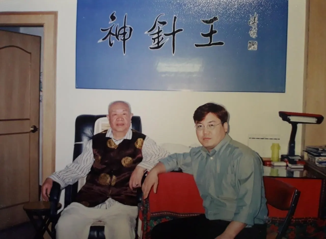 - 중국 청나라 마지막 어의(御醫) 직계 제자로 개인병원이 불가한 중국정부에서 개인병원을 허가해 주고 신침왕(神針王) 이란 호칭을 붙여주고 보호하고 있는 장침의 대가 왕수신 선생입니다... 사진은 왕수신 선생과 함께 의림기행(醫林奇行) 프로그램 제작 중에... 30대의 저입니다. 당시 저는 중의정보연구소를 설립하고 운영 중에 "의림기행(醫林奇行)"을 제작하였습니다. 이 분의 장침 치료부터 시작해서 15명의 의림고수(醫林高手) 들을 찾아 그들의 생활과 치료 현장을 담아 mbc 모닝와이드에서 소개하였습니다.