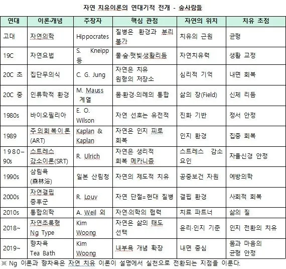 자연 치유 관련 이론의 연대기적 배열
