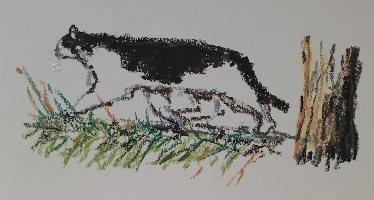쫓을 것이냐 말 것이냐, 그것이 문제로다. 오일파스텔 산 기념으로 한번 그려봄^^