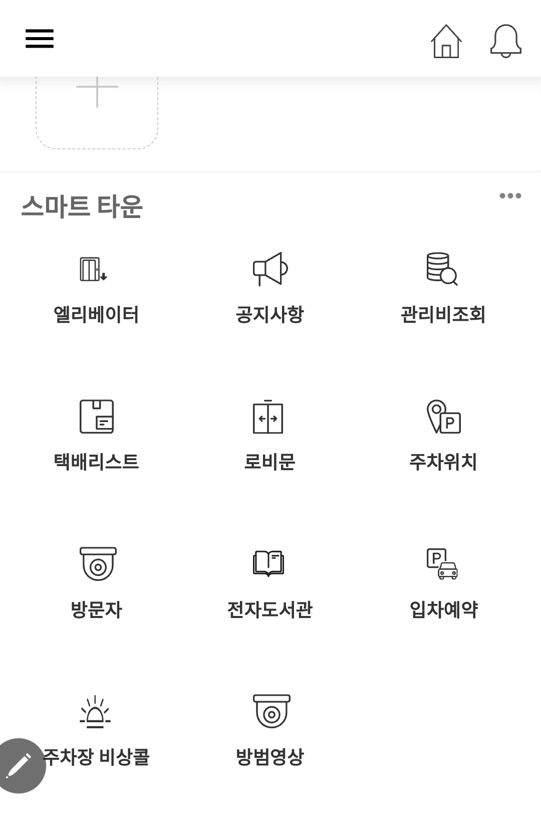 미세먼지와 이산화탄소 농도가 나란히 표시되어 있었다. 이산화탄소 농도는 생각도 안 했는데, 수치화되어 나오니 관심이 갔다. 아래는 자이 스페이스 앱의 메인 화면의 모습이다.