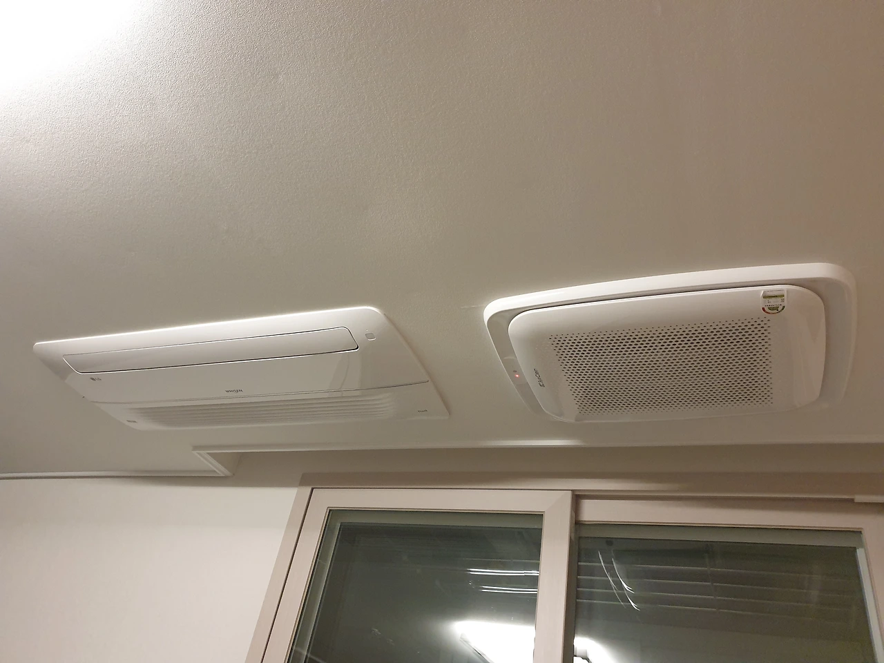 공기청정기는 천정의 에어컨 옆에 나란히 위치하고 있었다.