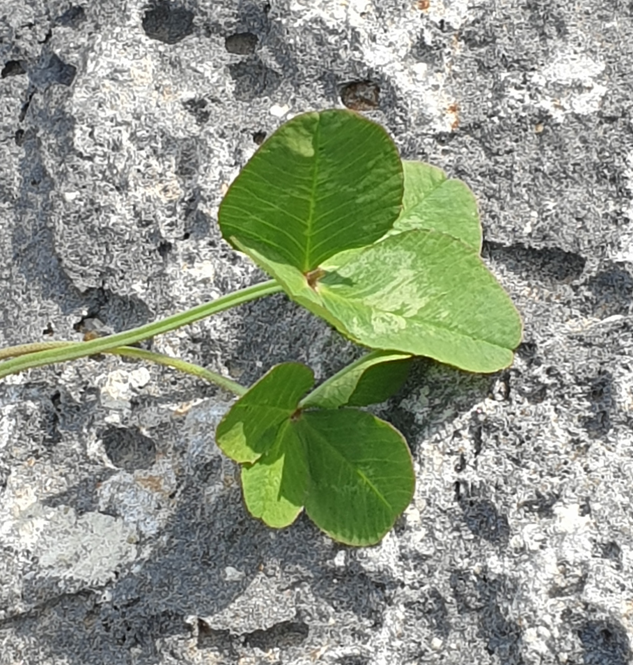내 왼손 엄지와 검지는 그것을 떨어뜨리지 않아야 하는 임무를 띠고 힘조절을 하고 있었다. 마치 떨어뜨리면 행운을 놓치기라도 하는 것처럼. 집으로 가는 길에 돌 위에 얹어놓고 사진 한 장 찍었다. 그 와중에도 바람에 날아가 버릴까 봐 조심스러웠다. 덕분에 산책시간이 짧아져 버렸지만 기분은 좋았다.