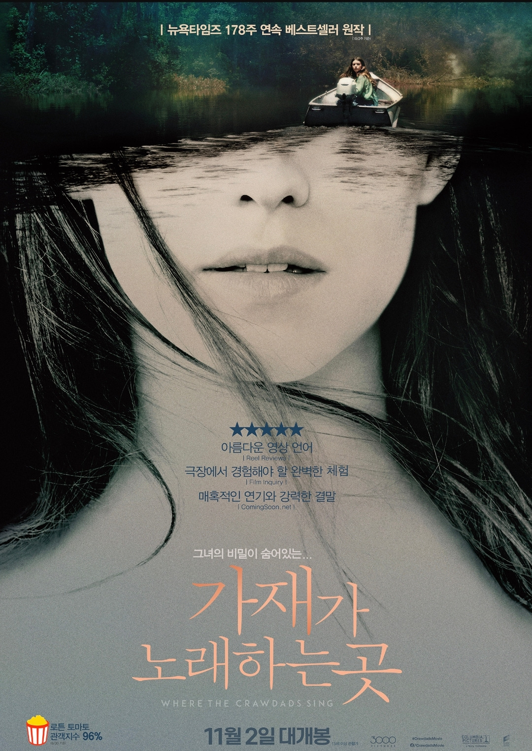 일단, 주인공이 지내는 자연에 대한 묘사가 뛰어났기 때문에, 이것들이 영상으로 어떻게 담겼나 보고 싶은 마음이 컸고, 소설은 두 개의 시간트랙-Kya의 어린 시절부터 이야기(1952년 시작), 체이스 Chase의 사망사건(1969년)-으로 진행되는데, 이걸 어떻게 영화에서 전달하는지 궁금했거든.