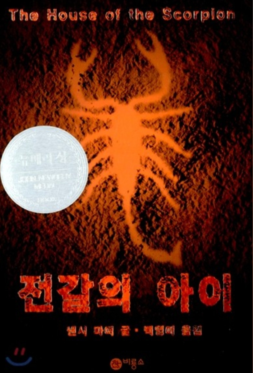 이번 책은 'The House of the Scorpion'입니다. 우리말 번역서 제목은 '전갈의 아이'입니다.