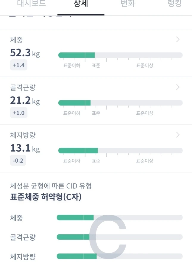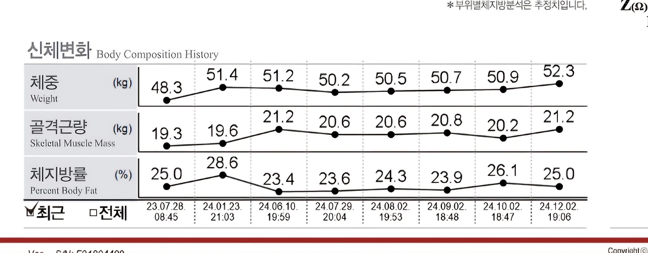 '00님의 경우에는 이 정도 체중으로 가는 게 맞다, 체중이 늘어난데 반해서 골격근량이 늘었으니 좋은 거... '라고 긍정의 멘트로 나를 위로? 하려는 듯했다.