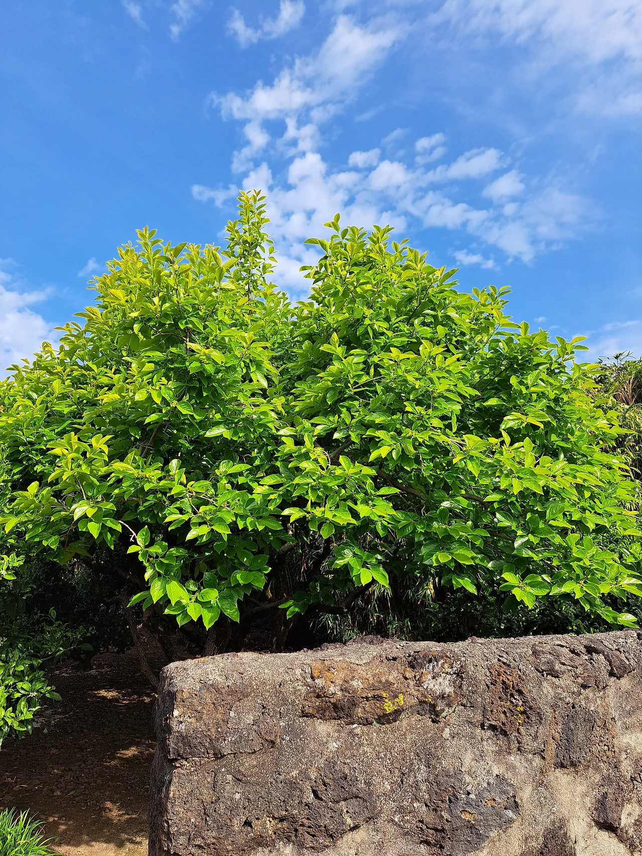 집을 나와 마당을 건너 귤나무 밭어귀로 간다. 마당과 텃밭사이 시멘트를 거칠게 바른 돌담이 경계로 서있다.