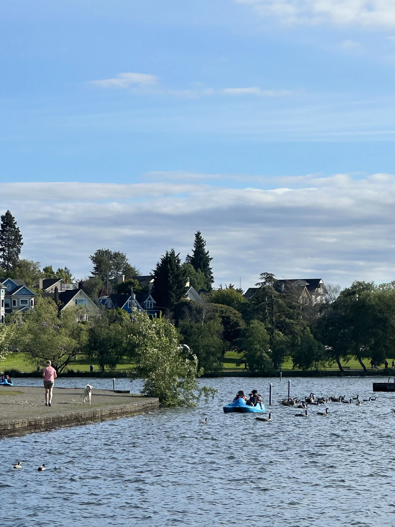 오늘은 오랜만에 날씨가 좋아서 오후에 남편이 퇴근하는걸 못 기다리고 집 앞 호수에 잠깐 나갔었다. 호수 공원 입구 바로 앞에 살고 있어서 정말로 집에서 2-3분이면 공원에 도착할 수 있다. 시애틀이라 날씨가 좋은 날이 많지는 않지만 날이 좋은 날에는 호수 주변이 전부 유원지처럼 느껴진다. 집 앞을 나오기만 하면 바로 여행을 온 느낌이 나는 것이다. 실제로 우리 집 바로 옆 건물에 있는 방이 에어비엔비에 올라와 있기도 하다. 근처에 에어비엔비가 있는 줄 전혀 모르고 있다가 최근에 독일에서 온 할머님이 우리 집 초인종을 눌러서 와인 따개를 빌려달라고 해서 알게 되었다. 나중에 찾아보니 동네에 에어비엔비가 꽤 있어서 놀랐다.