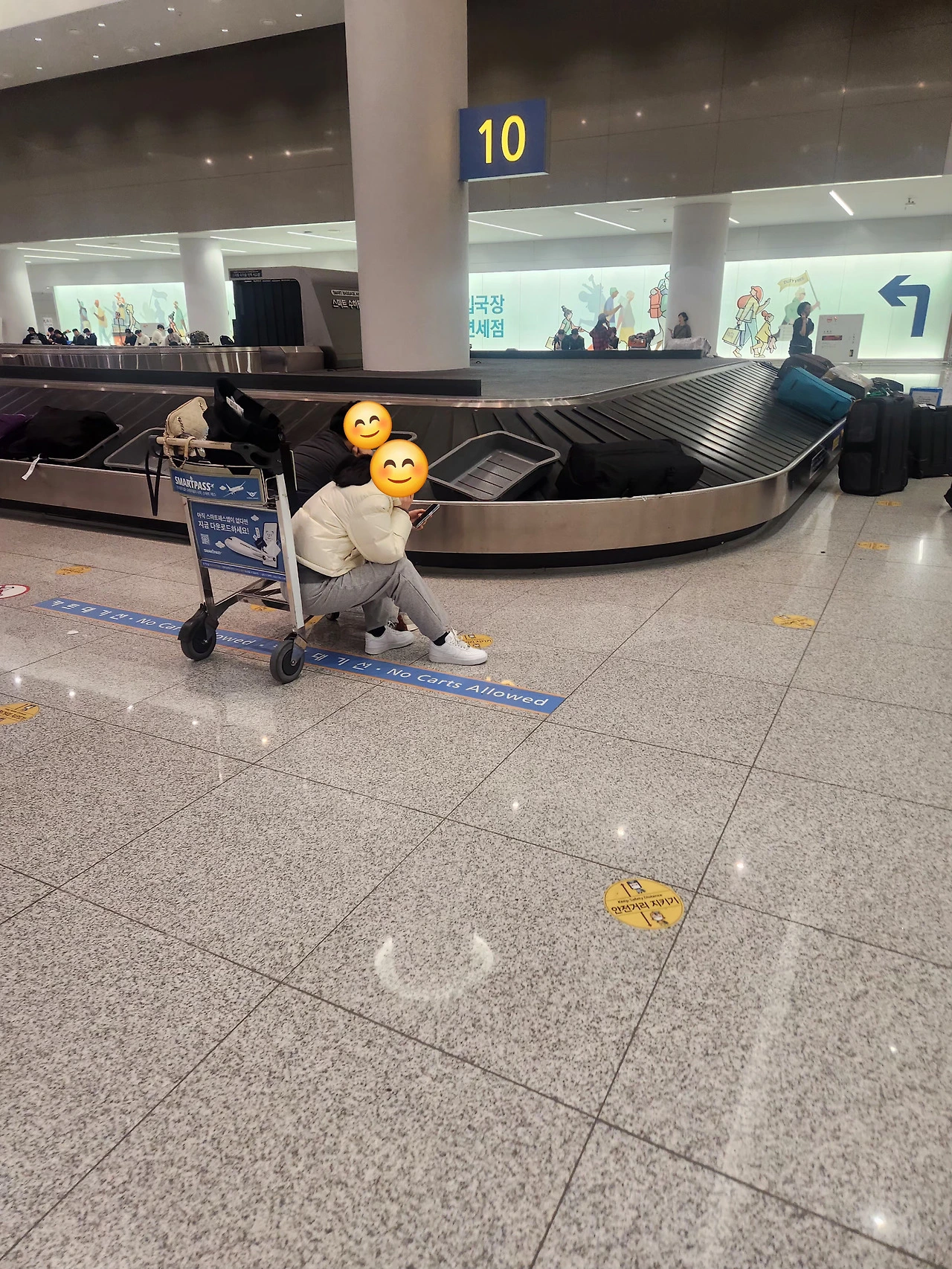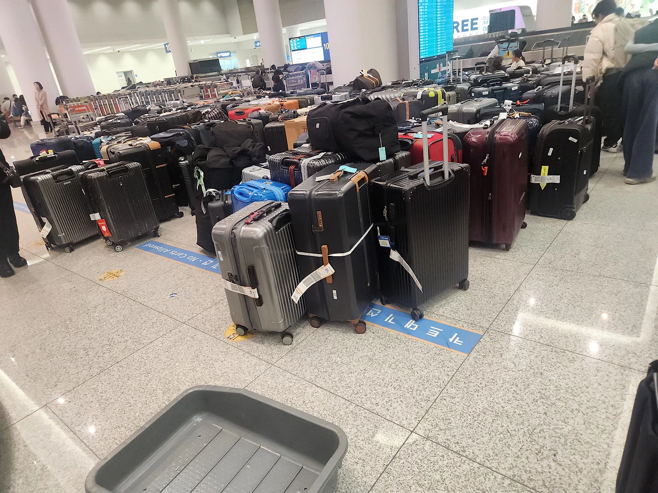 다들 화가 날 만도 한데 고함을 지르거나 화내는 사람 없이 차분히 짐을 기다렸고 심지어 짐을 찾았을 땐 환하게 웃었다.