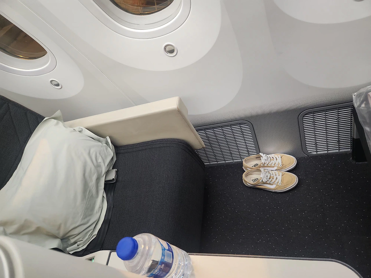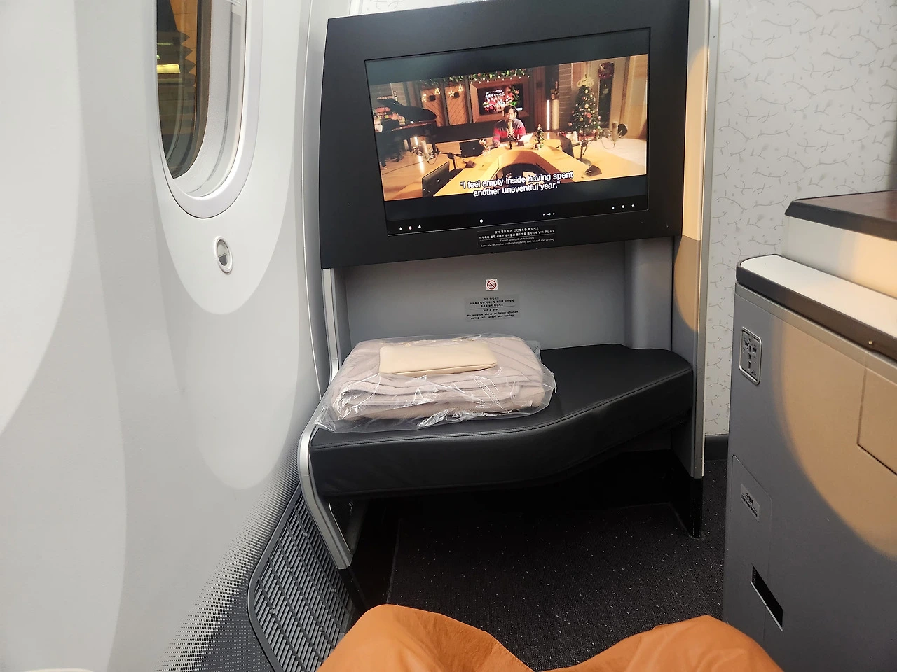 수요일보다 시간이 약간 빠른 오후 12시 20분 비행기에 탑승했다. 이런저런 혜택을 받아 감사하게도 비즈니스 좌석을 이용하게 되었다. 결항이 아니었으면 딸아이도 함께 탔을 텐데 혼자 편안한 자리를 차지한다는 미안함은 15시간의 비행시간 동안 그리 오래 지속되지 못했다. 비행기가 일정 궤도에 오르고 좌석 벨트 등이 꺼지자마자 기내식 메뉴판을 보고 식사를 주문하라는 승무원의 안내에 엔도르핀이 솟았기 때문이다.