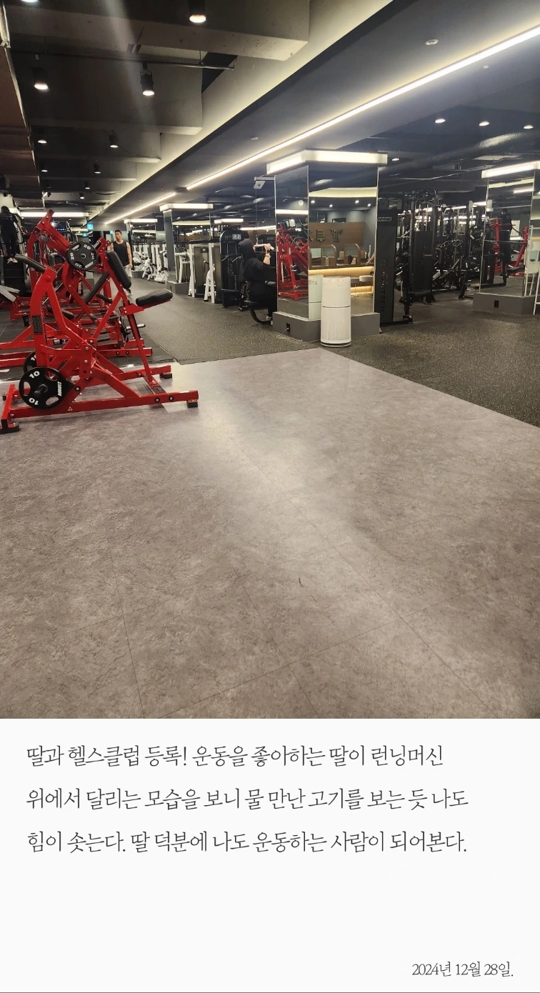 딸과 함께 운동을 시작했다. 매일 저녁 손을 잡고 피트니스 센터에 가서 러닝머신 위를 달린다.