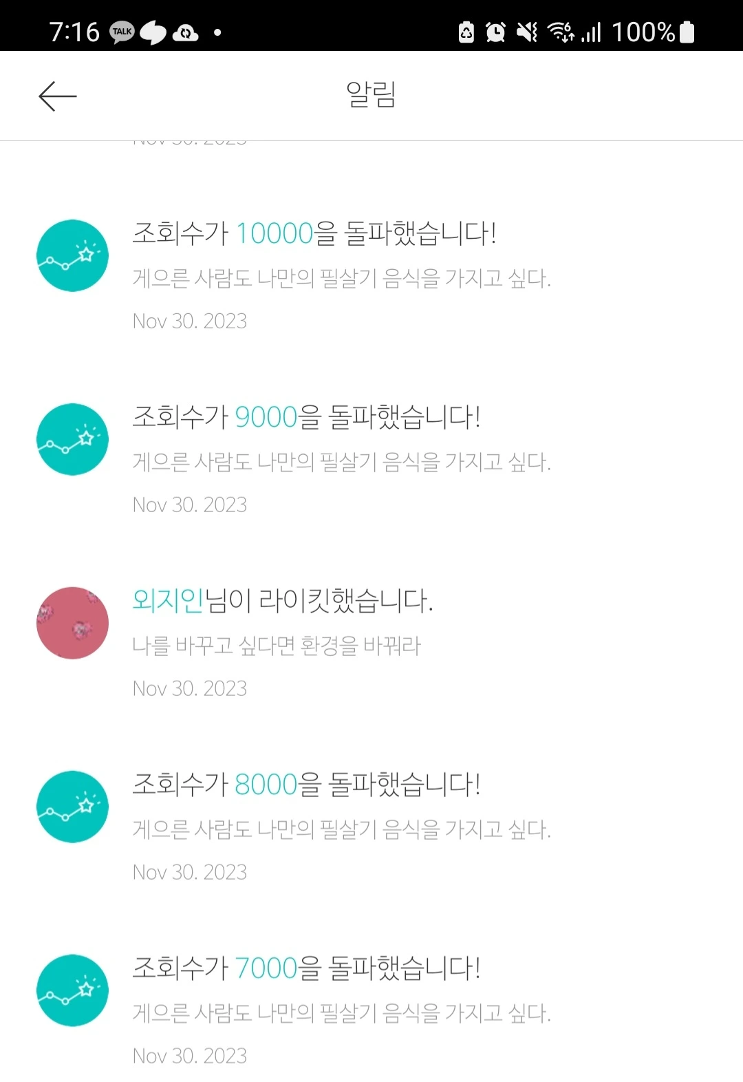 조회수가 1000을 넘길 때마다 계속해서 알림이 왔다. 금세 5000이 넘었다. 매스컴의 위력이 이런 거구나. 평소에 조회수가 40이면 많은 편인데 5000이라니 놀라웠다. 저녁이 되자 10000이 넘었다고 알림이 왔다. 내 글 중 처음으로 라이킷도 100을 넘었다.