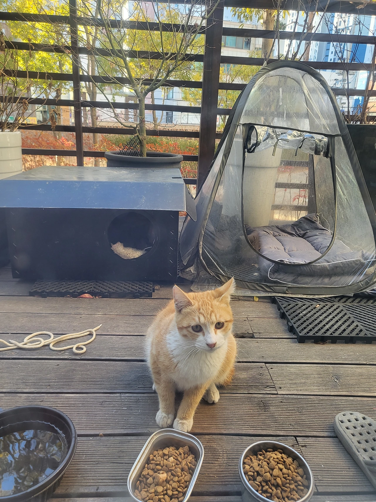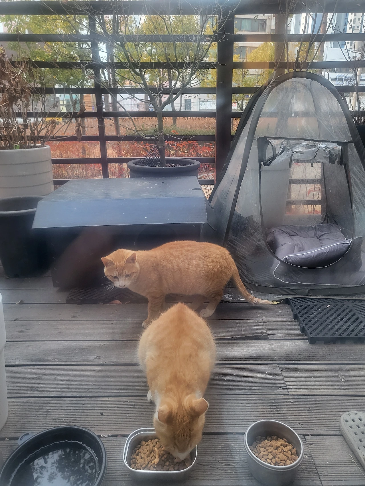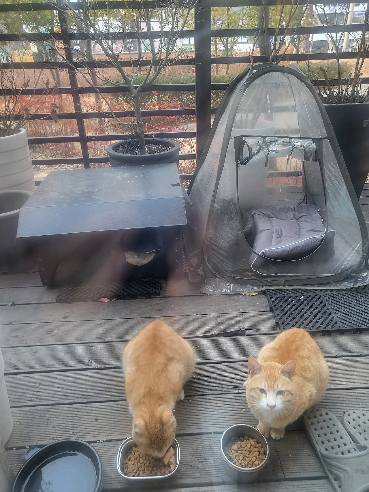 츄츄와 우유는 아침이면 나를 기다리고 있었다. 도대체 치즈는 어디로 간건지. 어른 고양이들이 아이들에게 안락한 집과 안정적인 먹이를 양보한건지. 아주 간간히 나비는 왔다가는데 치즈는 통 안 보였다.