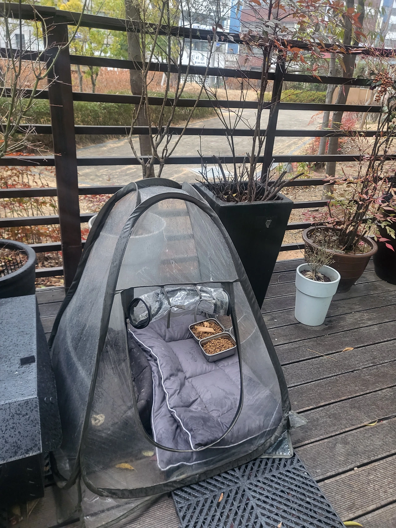 츄츄야, 우유야 오늘은 비가 올 것 같구나. 오늘 아침은 방석 위에 사료를 두었어. 챙겨 먹으렴.