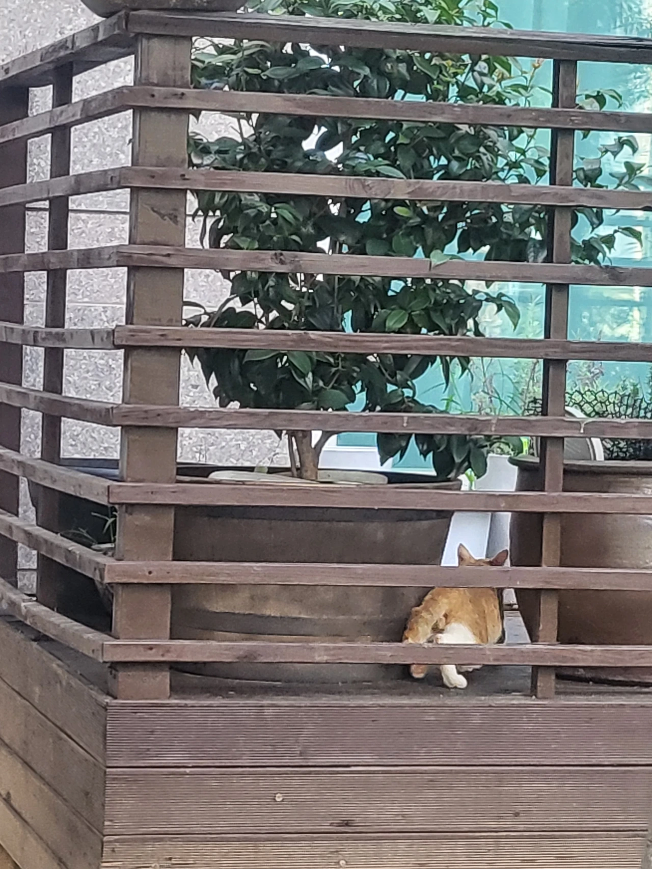 우유는 동백나무 화분을 좋아하는게 틀림없다. 그 화분 뒤에 숨거나 그 뒤에서 낮잠을 자는 것을 즐기는 듯 했다.