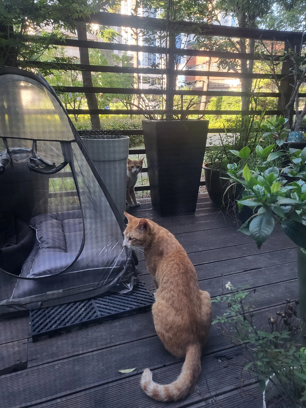 우유는 여자친구 크림이를 데려왔다. 우유는 사료를 먹다가 크림이에게 양보했다. 하지만 크림이는 내 눈치를 보느라 제대로 못 먹었다. 그러곤 이내 베란다 바깥으로 내려가버렸다. 우유는 내가 옆에 있어도 마음 편히 밥을 먹지만 여자친구 크림이는 눈을 동그랗게 뜨고 나를 올려다보며 경계했다.