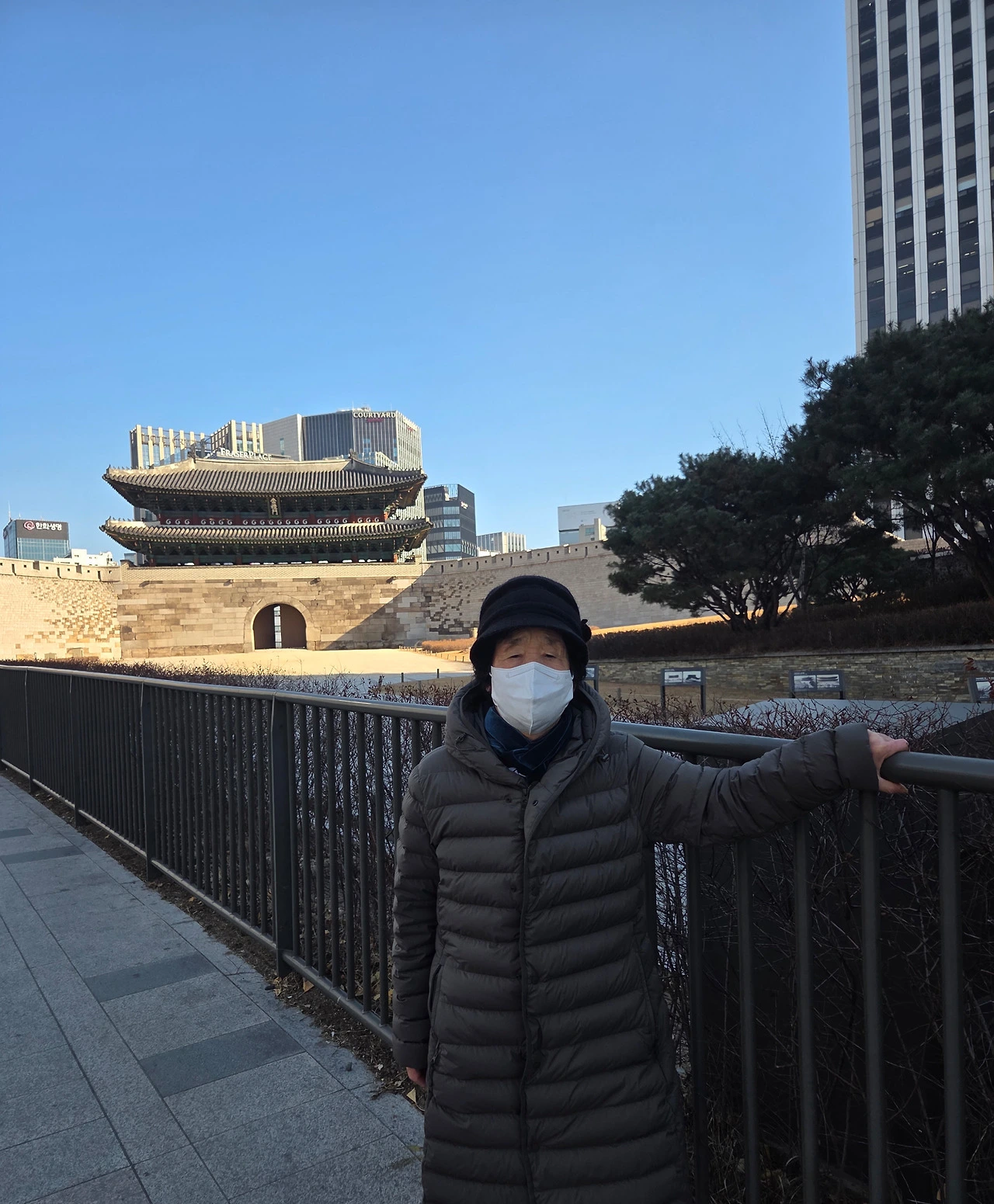 복잡한 서울역을 벗어나 지하도를 따라 걸었다. 남대문 시장 쪽으로 가는 길에 숭례문이 있었다. 안타깝게도 쉬는 날이었다. 나는 숭례문 앞에 선 시어머니 사진을 한 장 찍었다. 시어머니는 포즈를 나름 잘 취해주었다.