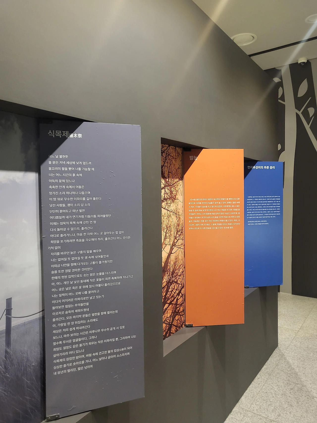 시인의 시들이 벽속의 풍경에도, 발걸음이 머무는 바닥에도 적혀있었다.