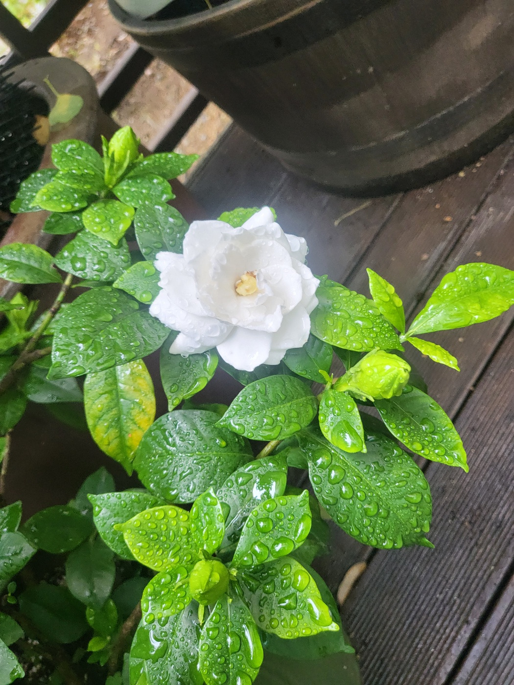 올해는 다른 해보다 치자꽃이 늦게 피여 마음을 졸였지만 다행히 고급스럽고 환한 자태를 뽐내었다.