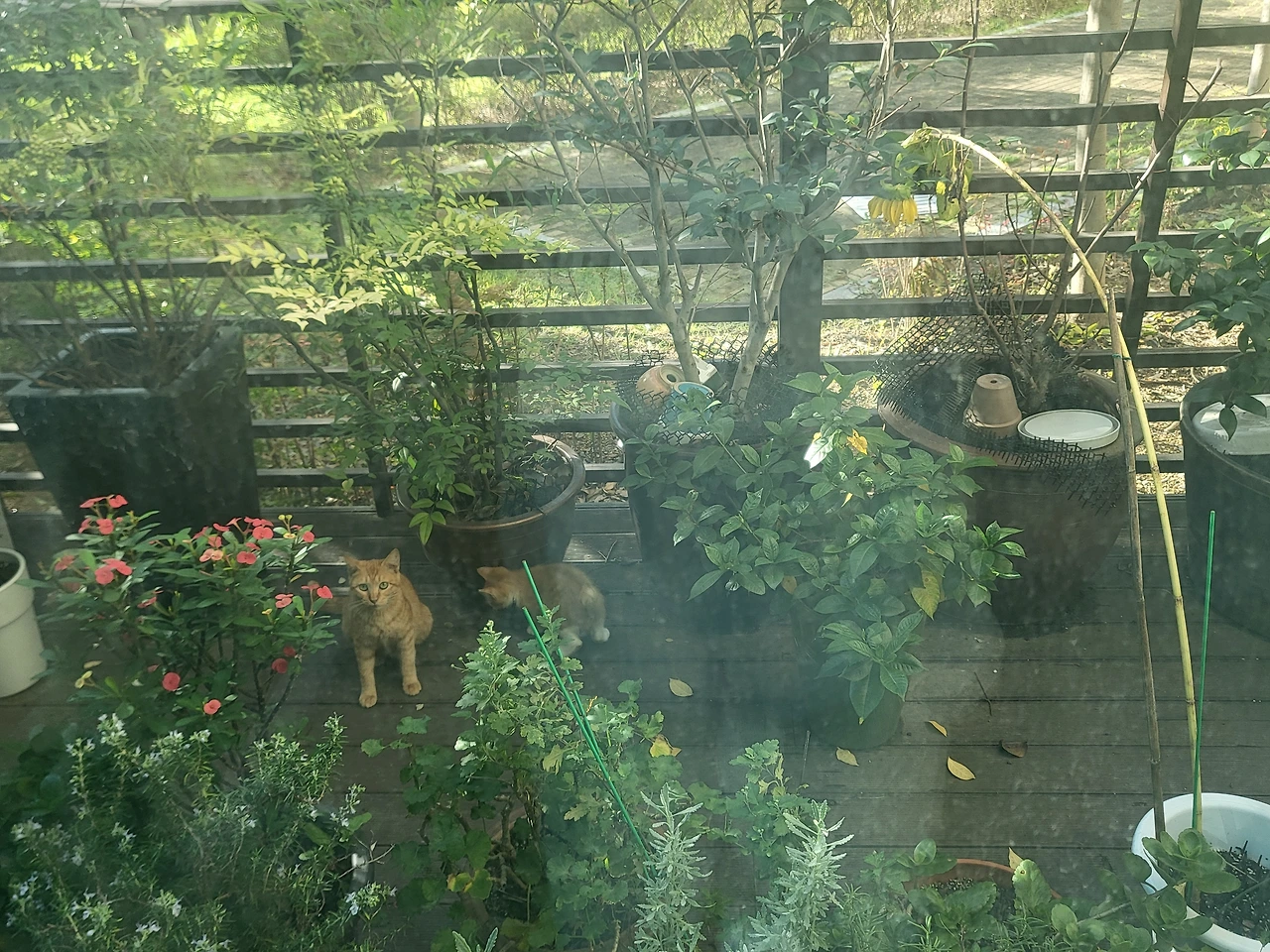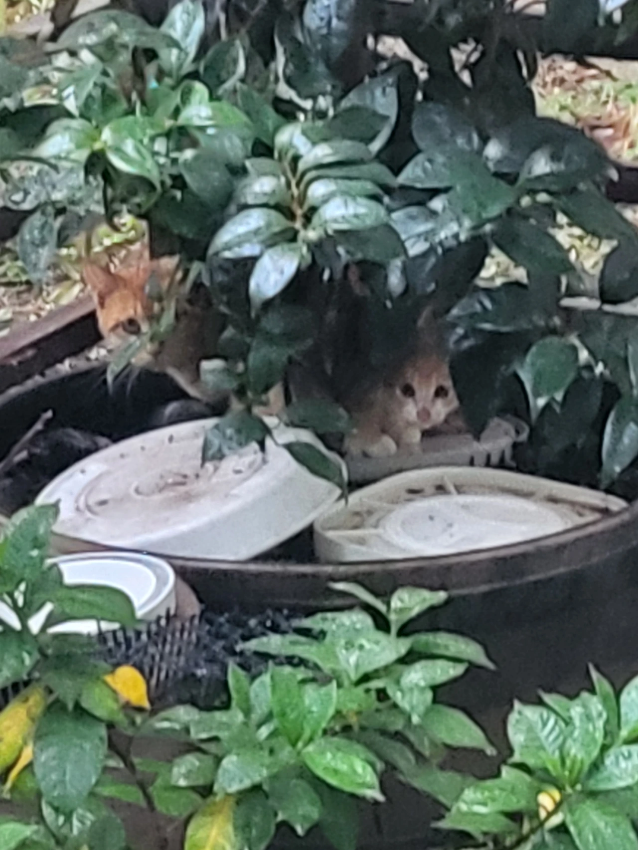 치즈는 아기 고양이도 데려왔고 아기 고양이도 치즈를 따라 사료를 먹었다. 그러곤 둘은 얼른 동백나무 위로 올라갔다. 그 위에는 고양이가 똥을 싸지 못하게 화분 받침대를 올려두었는데 그 위에 치즈와 아기 고양이가 자리를 잡았다.