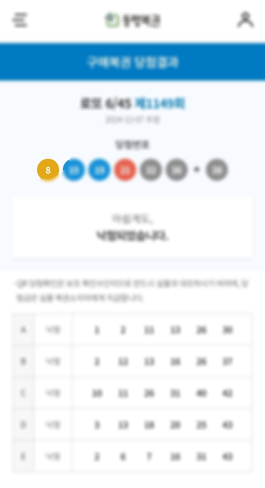 비상계엄에 탄핵소추에 뉴스 보느라 눈도 충혈되고 마음도 착잡했다. 그런데 로또마저 숫자하나 안 맞고 꽝이었다. 로또가 언제 내 마음을 읽는 재주가 있긴 했나. 기분 좋으면 잘 맞고 기분 안 좋으면 안 맞는. 뭐, 하긴. 숫자 몇 개 맞아봤자 오천 원도 안 되는 꽝인 건 똑같은걸. 이런 것에 연연하지 말자!