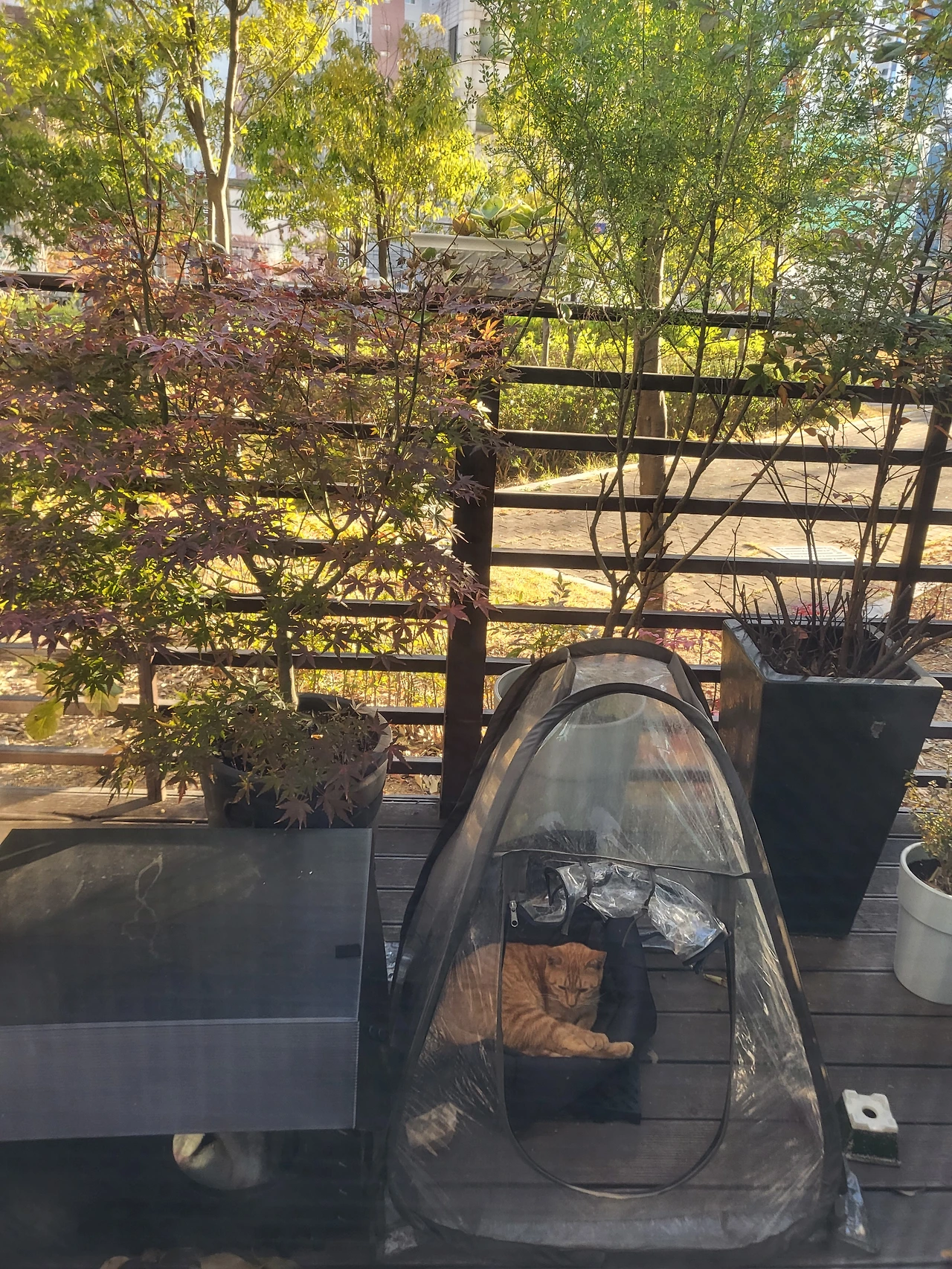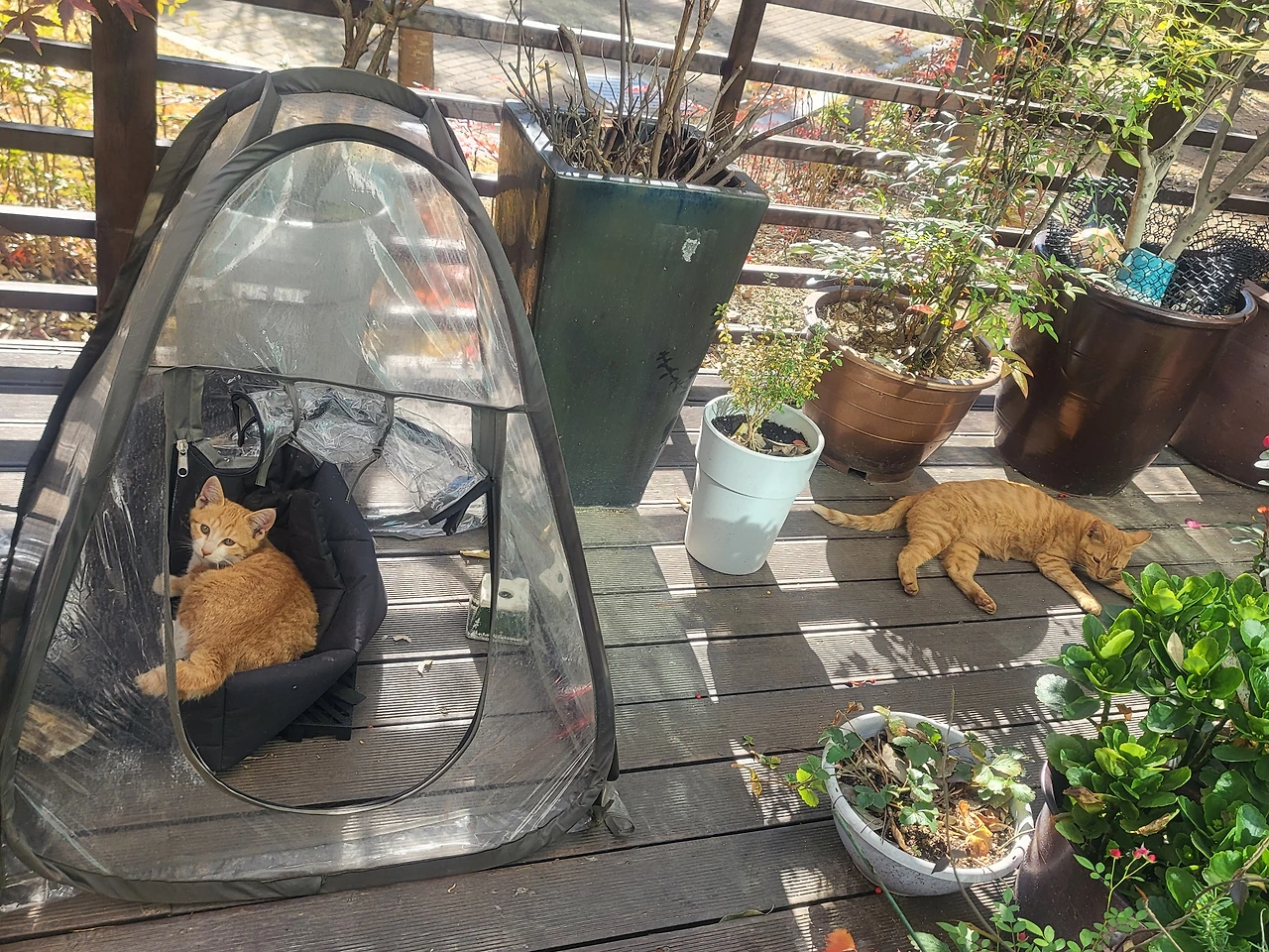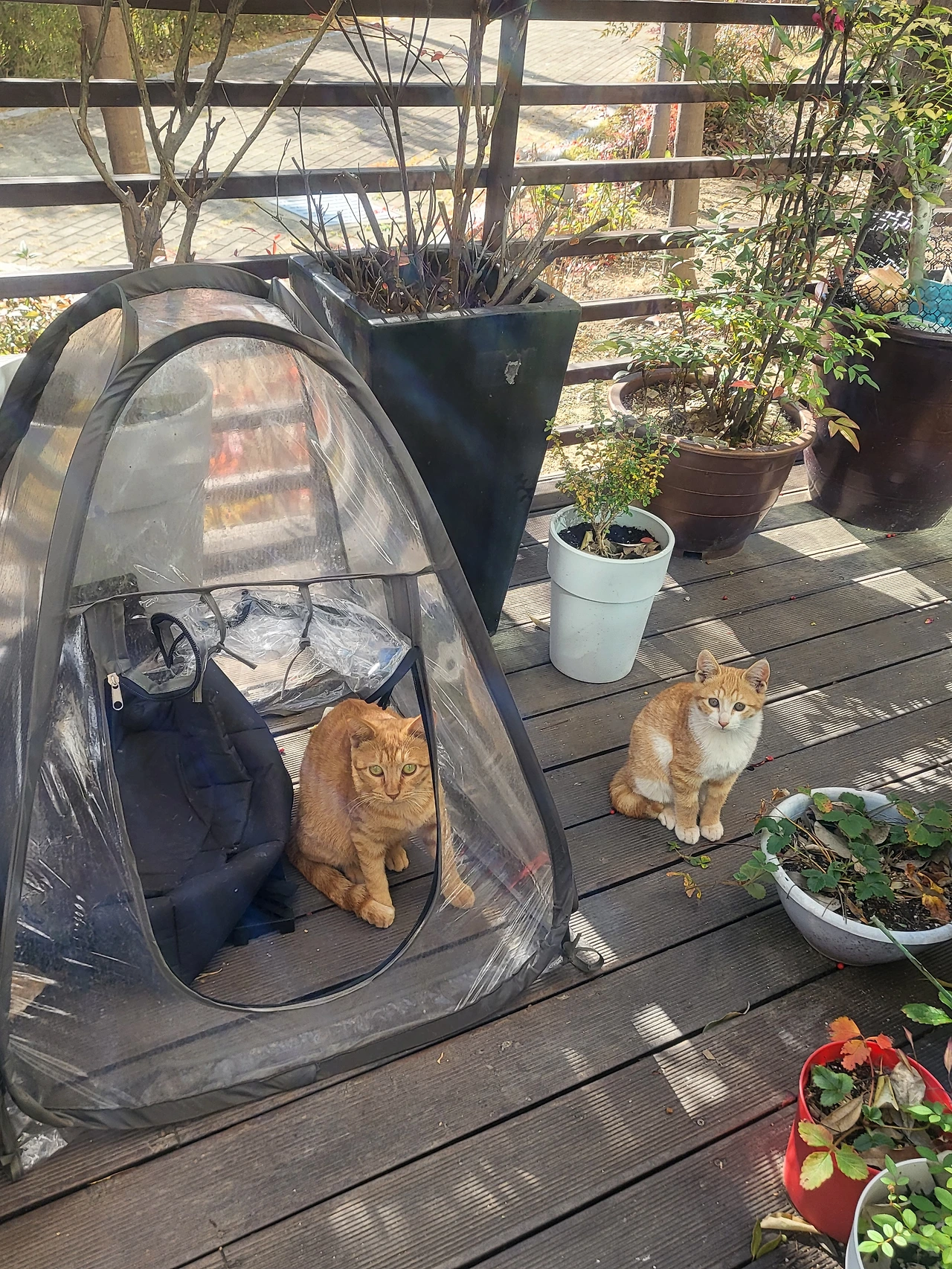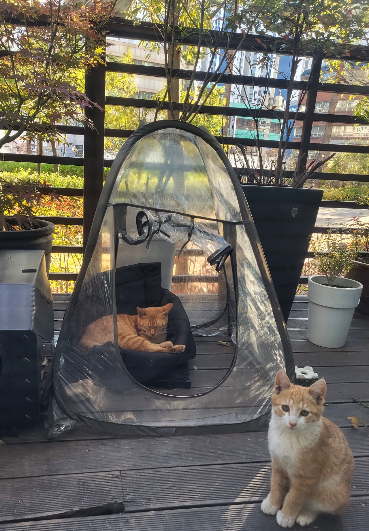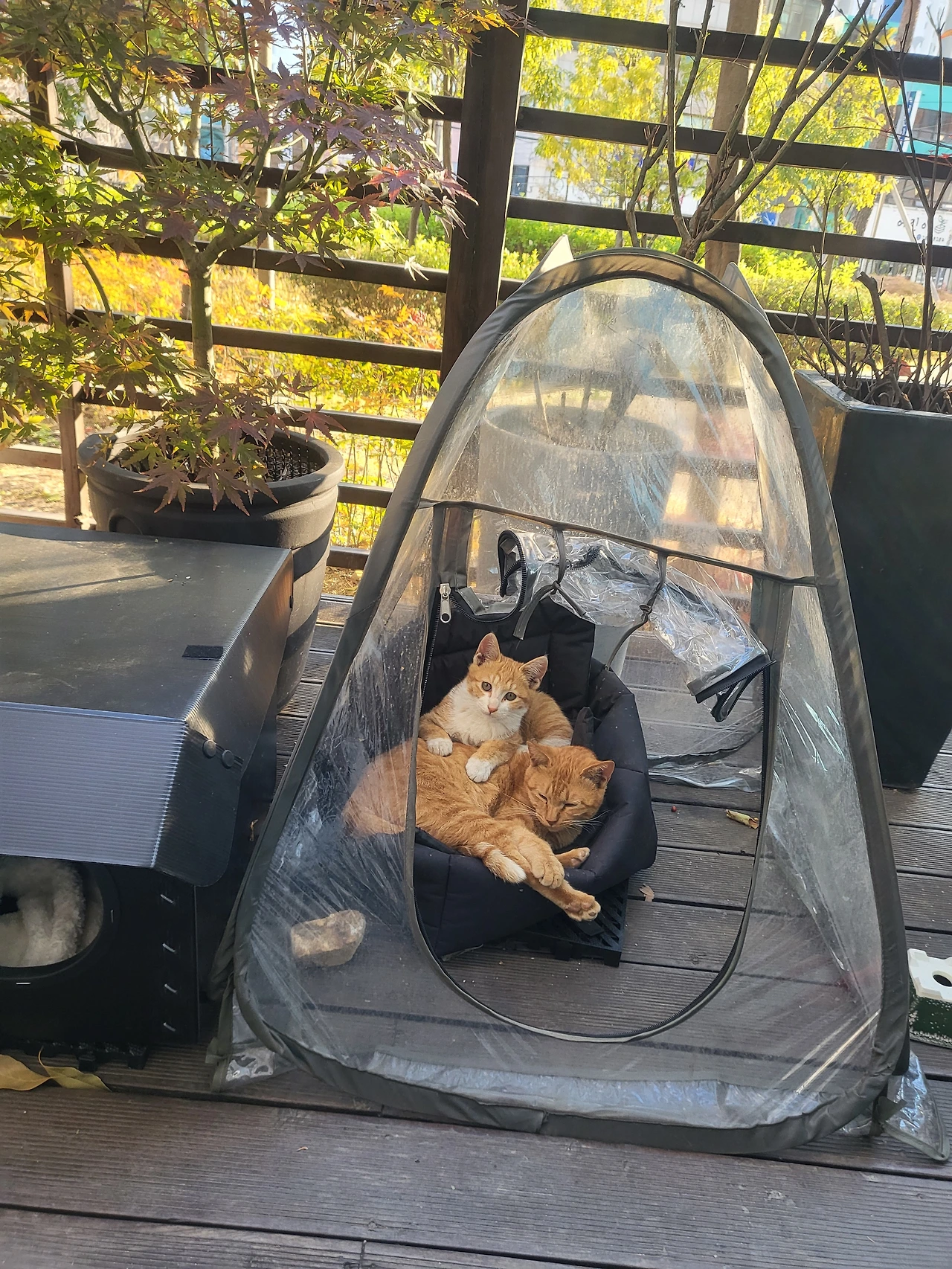 고양이 치즈와 아기 우유는 좀더 따뜻한 집에는 잘 들어가지 않았다. 밤이나 낮이나 비닐집이 그들의 보금자리였다.
